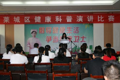 为庆祝首届“医师节”,展示卫生计生工作者的风采,推动全区健康教育深入开展,7月9日,莱城区卫计局组织举办了全区健康科普演讲比赛,来自全区医疗卫计机构的12名优秀医护人员报名参赛。
